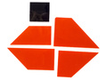 Уложить в квадратную рамочку все 5 предлагаемых элементов (четыре прямоугольных трапеции и один квадрат). Элементы можно как угодно перемещать, поворачивать и переворачивать, но нельзя накладывать друг на друга. Свободное место в два раза больше площади квадратного элемента, и когда вы решите эту задачу, свободная площадь еще останется.