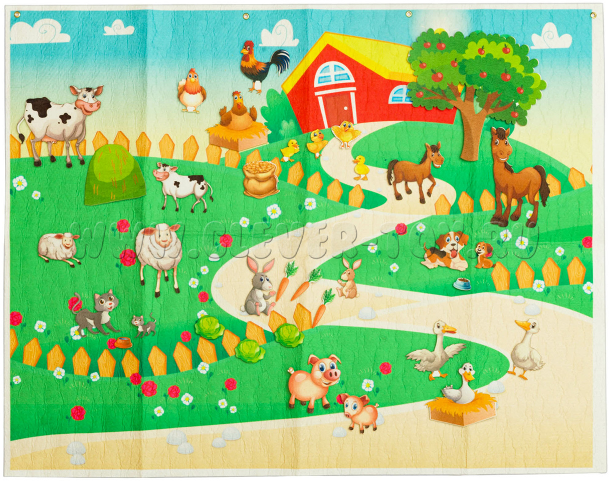 Используя фетровые фигурки животных и атрибутов сельской жизни, родители и дети могут придумать множество интересных развивающих игр.