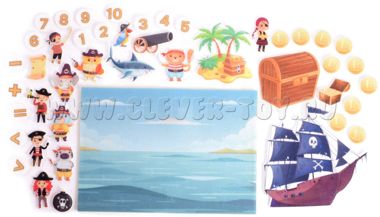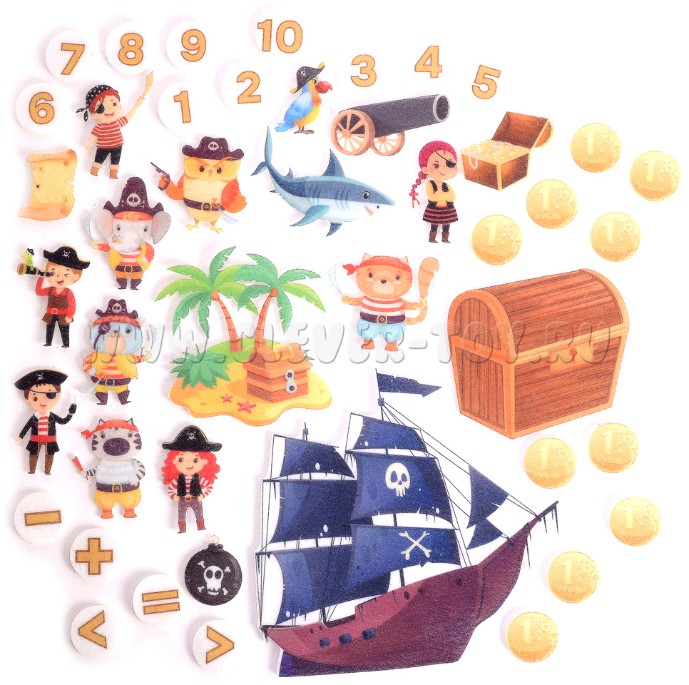 «Пиратская арифметика» — это игра, которая поможет вашему ребёнку развить концентрацию и внимание. Благодаря этой игре ребёнок также сможет улучшить свою речь и воображение.«Пиратскую арифметику» можно использовать как для индивидуальных занятий, так и для работы в детском саду. В комплект входит игровое поле и 45 деталей.