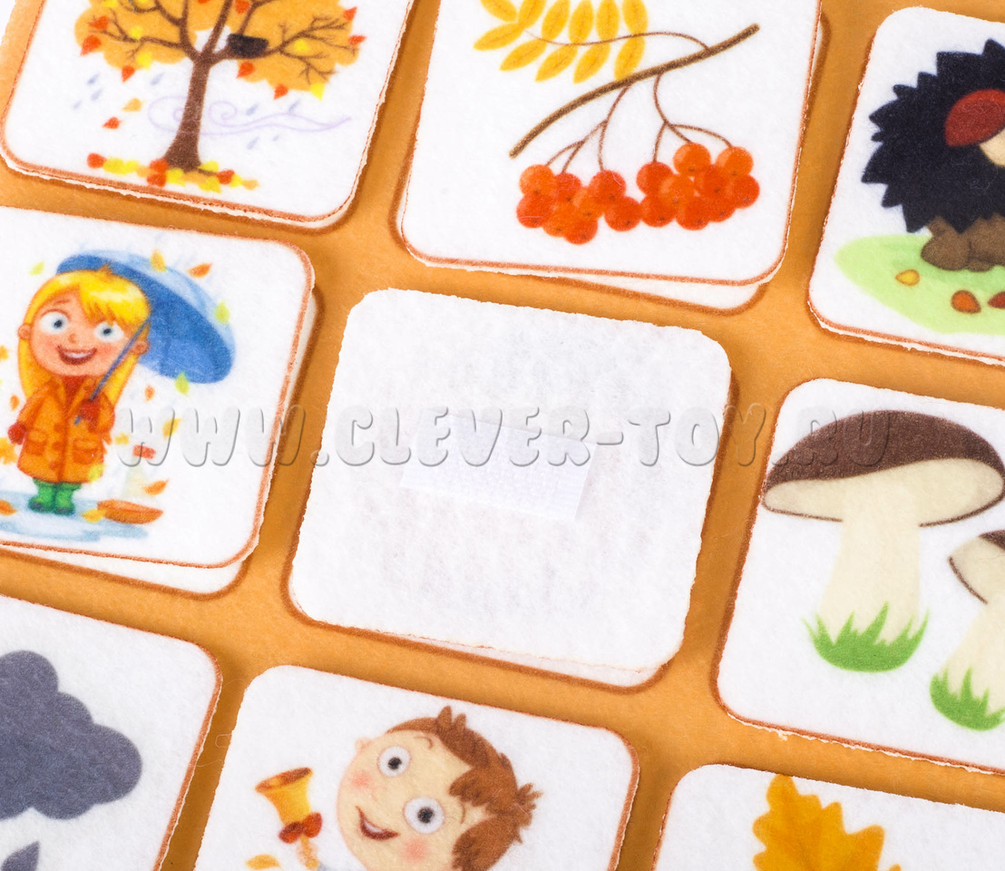 • маленькие фигурки на липучках с изоброжением деревьев, мальчиков, девочек, птиц, ягод, солнца, снежинки и т.д..