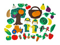 - герои – мальчик и девочка (каждый по 25*15 см); предметы – трактор (20*15 см), дерево (30*30 см), корзина (26*26 см);