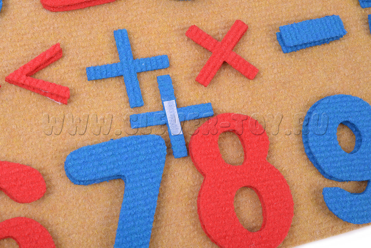 • математические знаки – 14 штук – плюсы, минусы, знак равенства, знаки «больше», «меньше»,