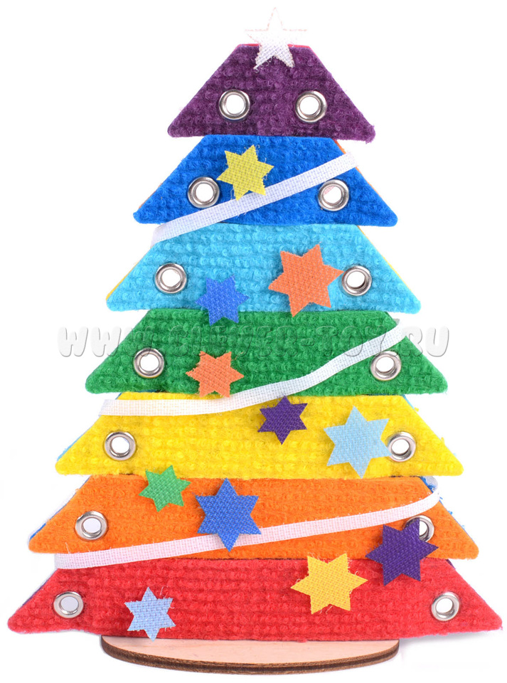 - Ёлочку высотой 17,5 см. из 7-ми веточек разной ширины радужных цветов (с одной стороны – от красного к фиолетовому, с другой – в обратной последовательности);