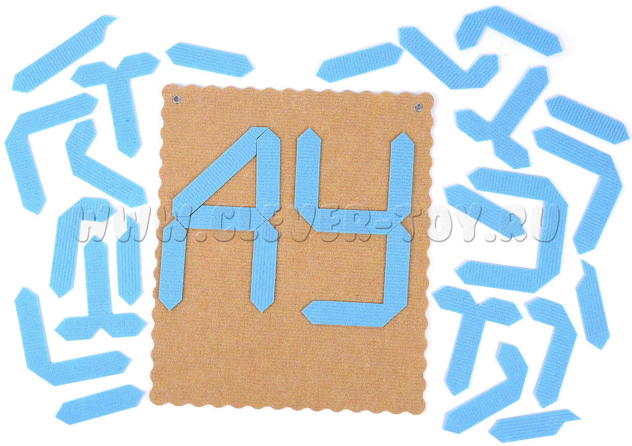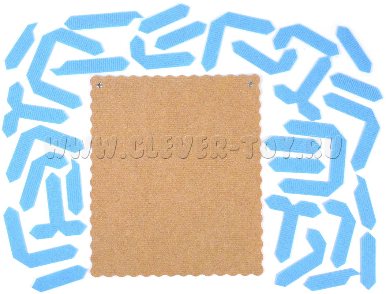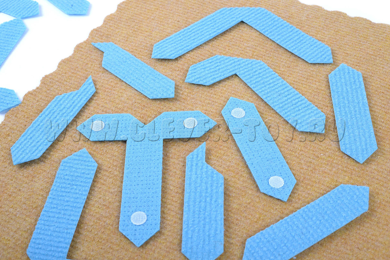 • 30 элементов из ковролина разной формы голубого цвета– «стрелочки» 8 шт., «уголки» 4 шт., «воротики» 2 шт., «клюшки» 6 шт., «лапки» 4 шт., «совочки» 6 шт.