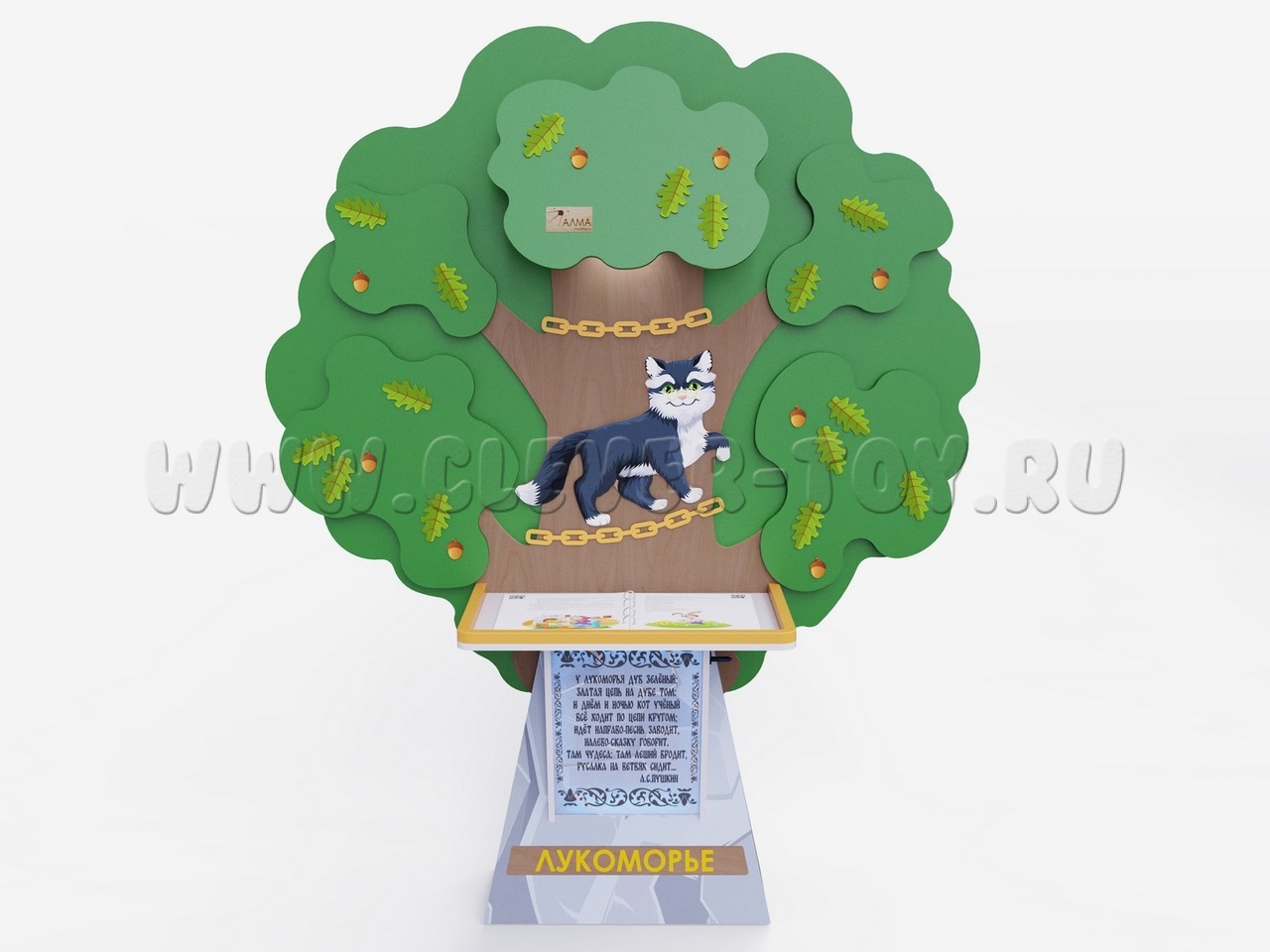Стилизованная стойка, выполненная в виде интерактивной книги, - это уникальный образовательный инструмент для программ дошкольного образования. Крупные пластиковые страницы, на которые проецируются яркие иллюстрации и текст, позволяют детям не только знакомиться с литературой, но и активно участвовать в процессе чтения.