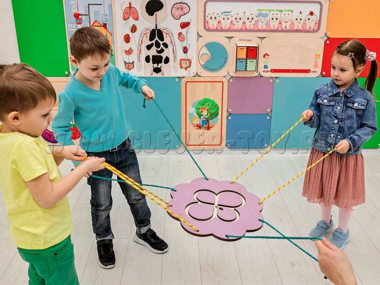 Лабиринт с четырьмя верёвочными ручками для совместной игры. Развивает командный дух, навыки сотрудничества и взаимодействия ради общей цели.