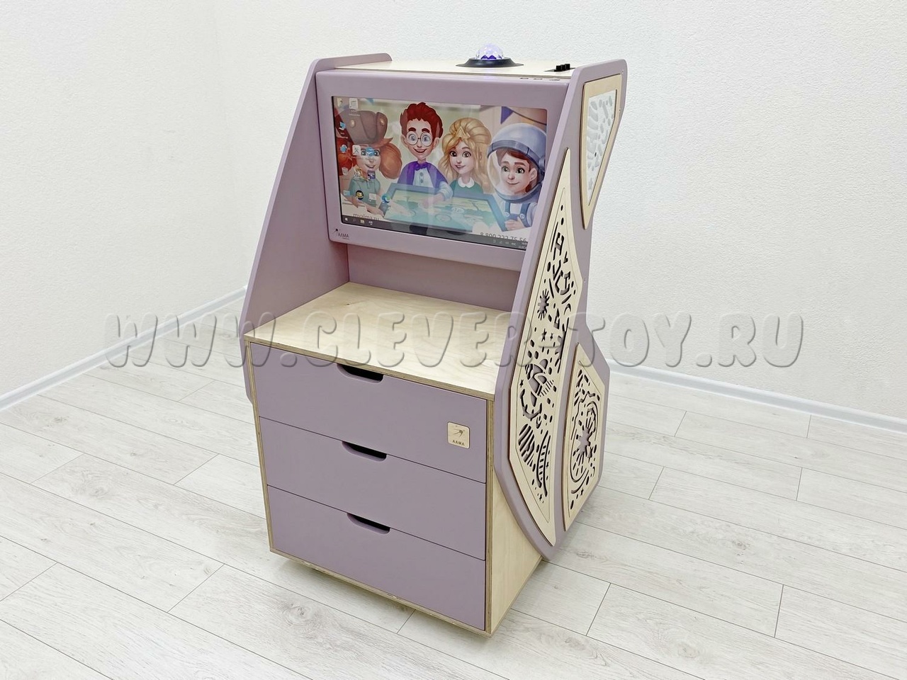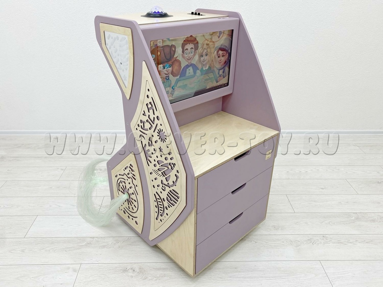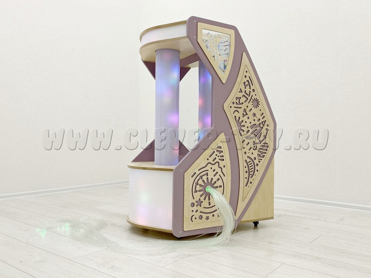 Универсальное оборудование для оснащения сенсорных комнат и кабинетов детских психологов. Мобильный комплекс включает: мультимедийную сенсорную панель с профессиональным ПО «Профиль психолога АЛМА», световую колонну, фонтан из фибероптического волокна, сенсорные панели, нейротренажёры, проектор звёздного неба и встроенную музыкальную систему.