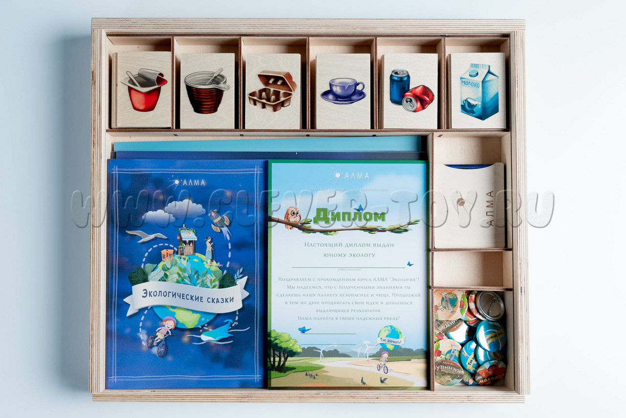 - Дидактическая игра по сортировке мусора (Комплект контейнеров для сортировки карточек с изображением типов мусора, карточки с изображением мусора – 60 шт.);