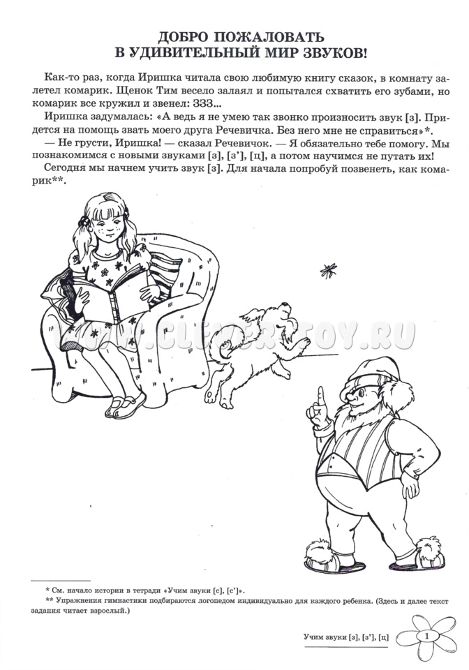 Домашняя логопедическая тетрадь Учим звуки [з], [з’], [ц]. 5-7 лет. (Ч/Б)
