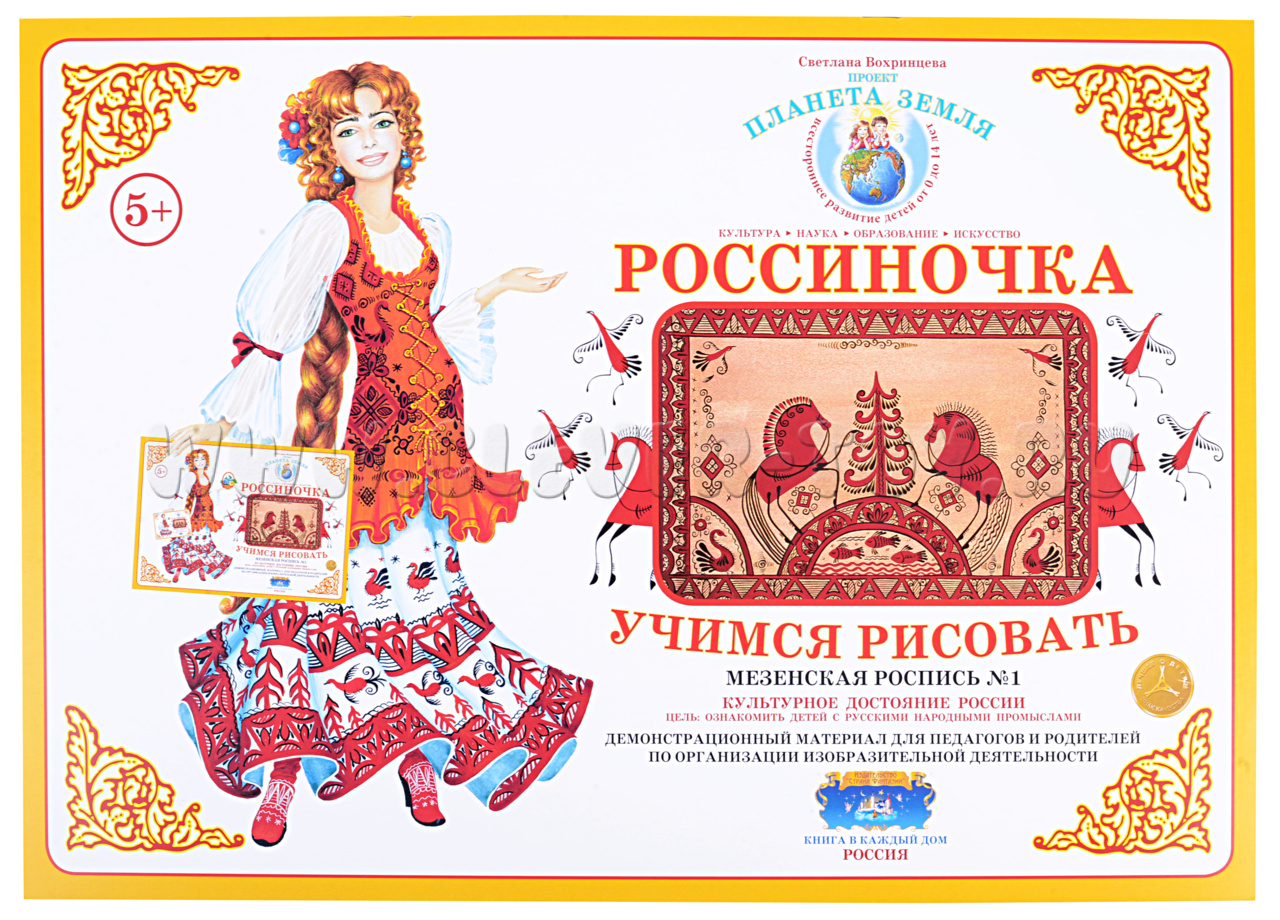 Издание содержит 10 красочных иллюстраций формата А3. Предназначено для ознакомления детей с одним из видов народного декоративного искусства – мезенской росписью, с особенностями ее элементов и последовательностью их выполнения.