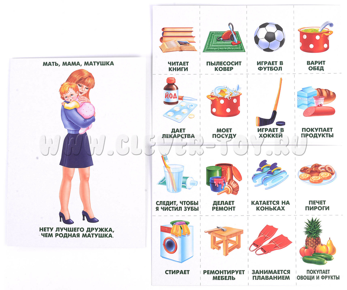 Предлагаем демонстрационный материал, позволяющий рассказать детям о семье. В игровой форме с детьми можно обсудить, что любят их родственники, кто кем кому приходится, кого как зовут, как ребята помогают родным.