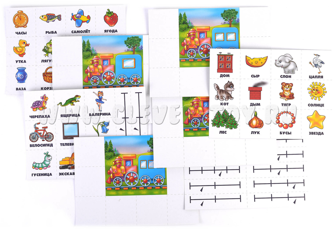 - Раскладываем карточки со словами на больших картах по вагончикам (например, если вагончик с 3 окошками - слова из 3 слогов).