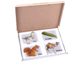 Ребенок раскладывает карточки с животными на изображения жилищ, в которых они обитают. Расскажите ему, где медведь проводит зиму, где курица высиживает яйца и т.п. Поведайте все, что Вы знаете о каждом животном, а потом предложите ребенку самому рассказать о жизни и повадках героев игры.