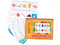 Набор включает в себя 14 игровых полей (5 пар слов с картинками на каждом) и 3 листа А4 с цветными разрезными карточками (используются в качестве вспомогательного материала при организации игрового процесса). Перед началом игры цветные карточки необходимо вырезать.