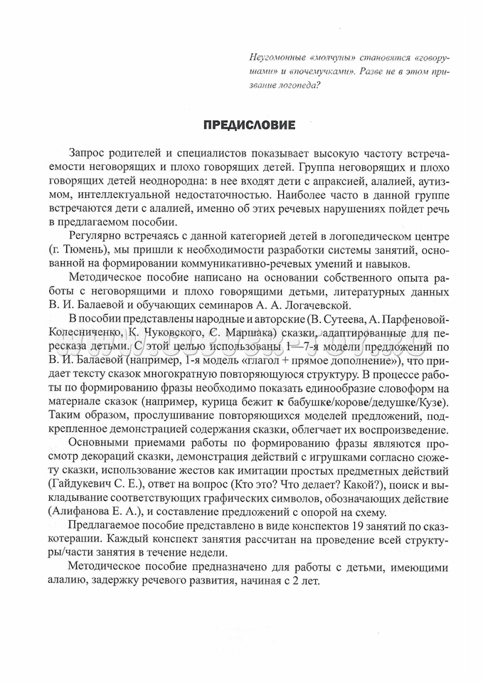 Предлагая адаптированные сказки, автор закладывает ритм, а ритм — это мощный аспект работы подкорковых структур мозга. Чем младше дети, тем чаще должны быть повторения. Издание ориентировано на широкий круг читателей: логопедов, студентов и родителей, интересующихся вопросами развития детей преддошкольного и дошкольного возраста.