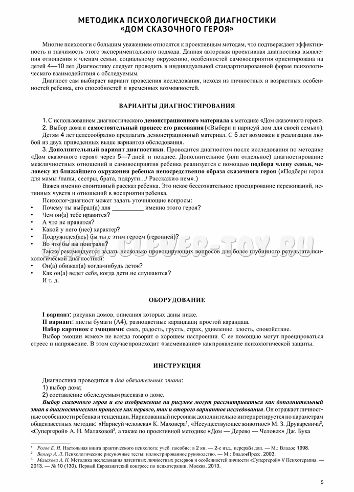 Методика диагностики особенностей межличностных взаимоотношений "Дом сказочного героя" А. Н. Малаховой будет интересна психологам. Она многогранно раскрывает мир личностного взаимодействия ребенка с родителями, близкими и родными, педагогами, сверстниками и друзьями, а также его индивидуальные характерологические особенности. Данный метод исследования не только результативен, но также прост и интересен в применении.