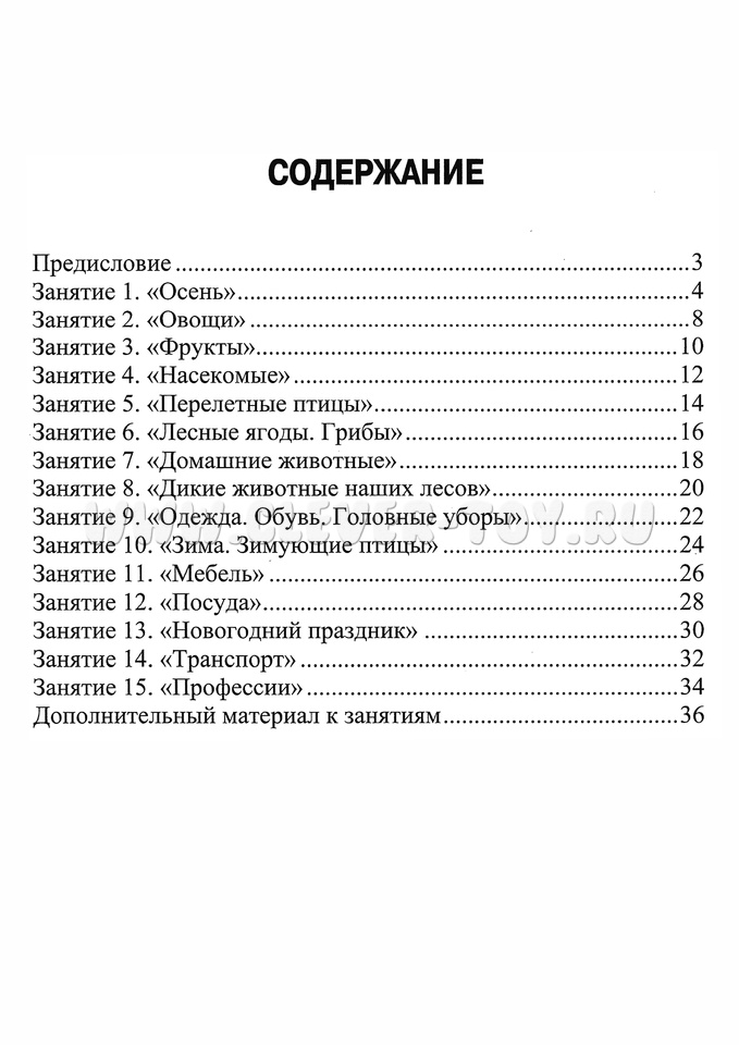 Тетрадь содержит 15 занятий, рассчитанных на неделю. Задания направлены на развитие связной речи, поддержание диалога, звуковой анализ слов, составление предложений и тренировку памяти. Также присутствуют пальчиковая гимнастика и подвижные упражнения.