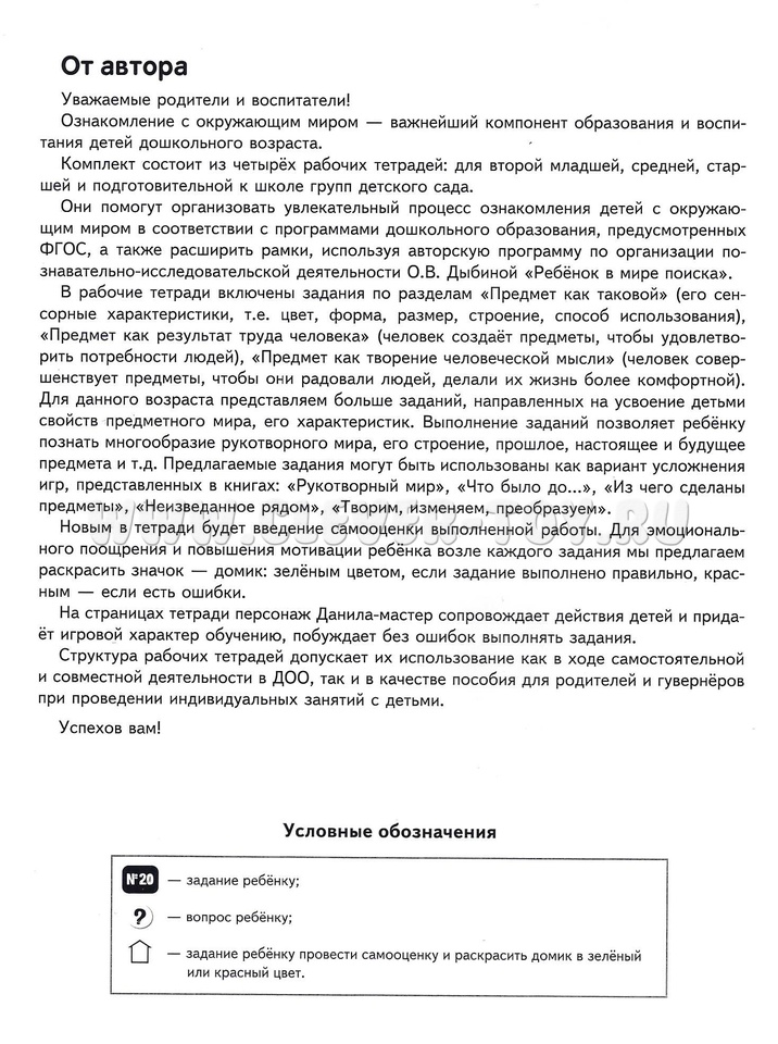 Тетрадь предназначена для работы с детьми 4-5 лет. Может помочь организовать познавательно-исследовательскую деятельность детей по авторской программе О.В. Дыбиной "Ребёнок в мире поиска" в детском саду, дома, в группах развития.
