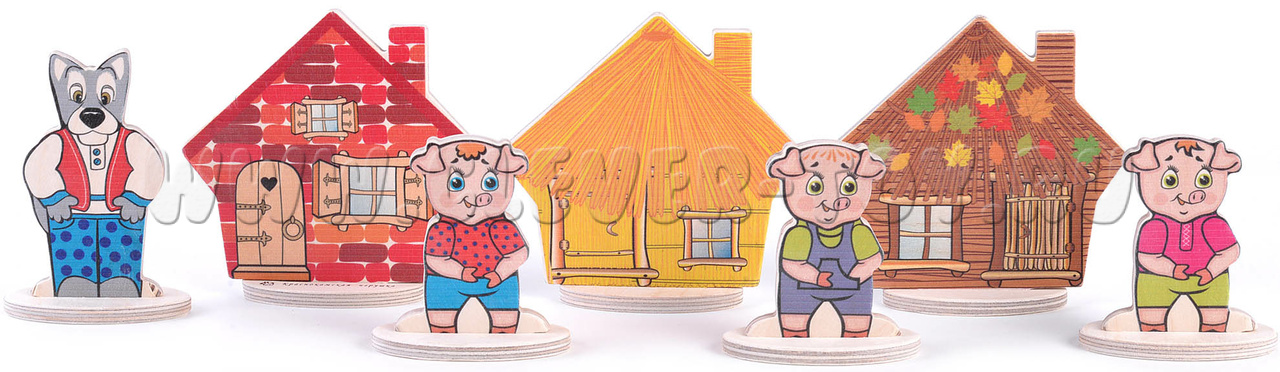 Набор деревянный "Персонажи сказки Три поросенка" (остатки)