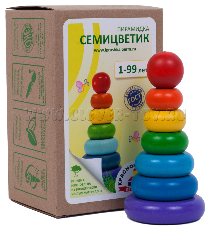 Экологически чистая, деревянная пирамидка "Семицветик " станет радостным подарком для любознательного ребенка!