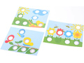 • 3 карточки с шестью заданиями (двусторонние карточки с яркими изображениями бабочек, цветочной полянки, цыплят, морского дна, кораблика и праздника «Новый год»);