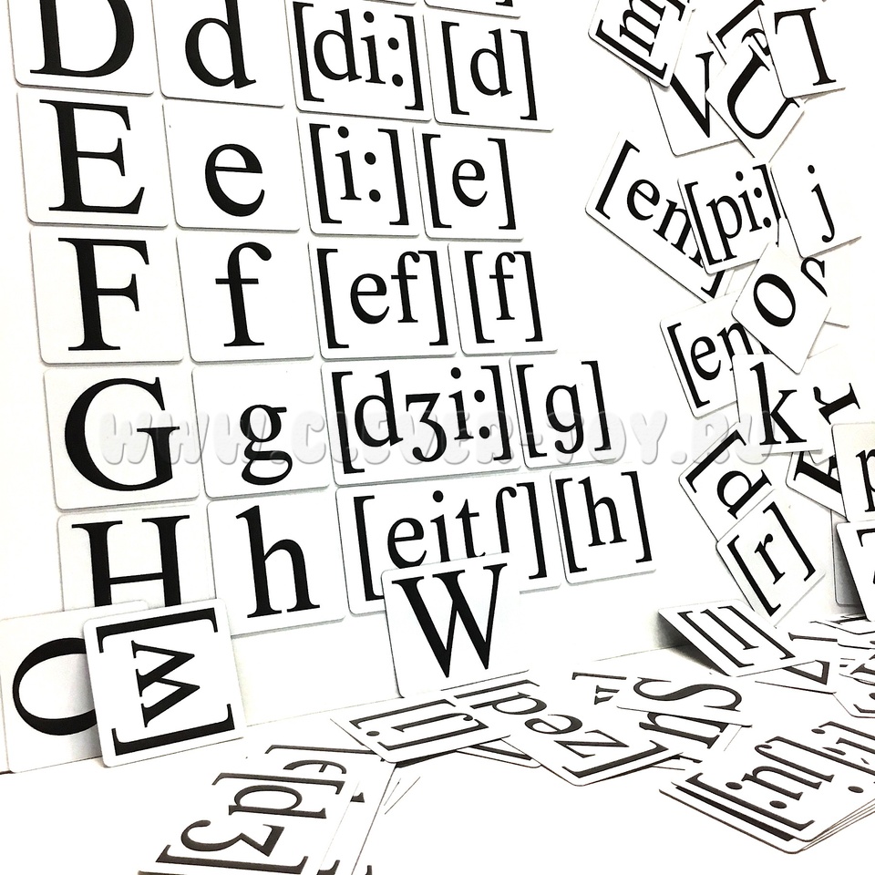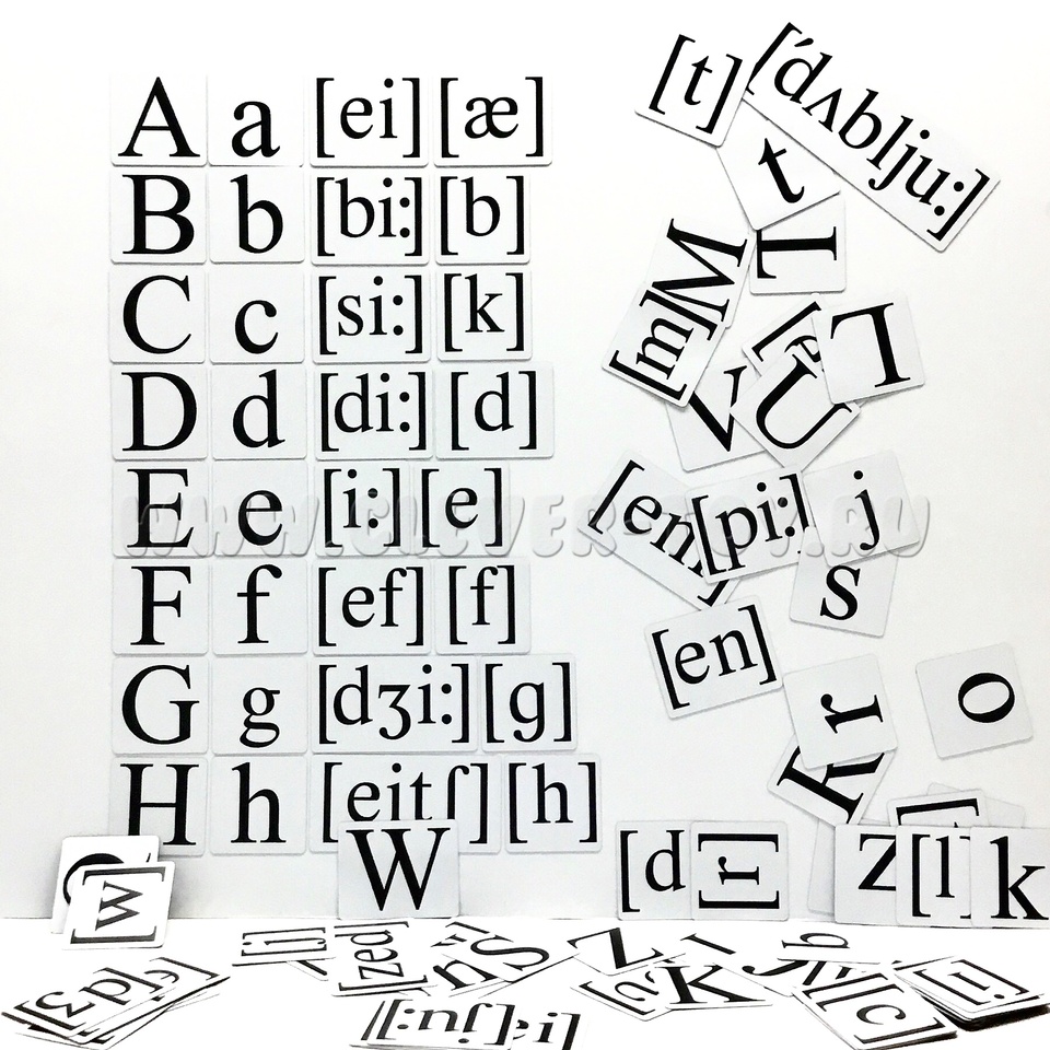 Набор магнитных карточек "Alphabet and transcription" (большой) предназначен для изучения английского алфавита и транскрипции. На карточках изображены печатнаые буквы и транскрипции, что помогает детям быстро освоить произношение.