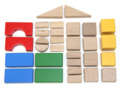 В наборе 30 элементов конструктора, которые выполнены из цельного бука и окрашены безопасными для здоровья красками на водной основе. Они не вызывают аллергию и не имеют неприятного запаха. Некоторые элементы конструктора оставлены в натуральном виде.