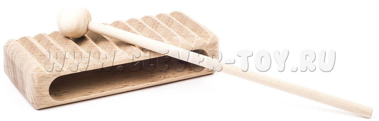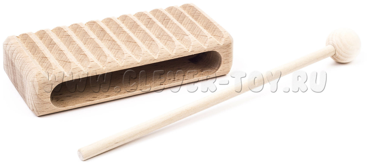 Представляет собой деревянный брус 30х60х100 мм. Музыкальный инструмент комплектуется ударной палочкой. Материал: бук.