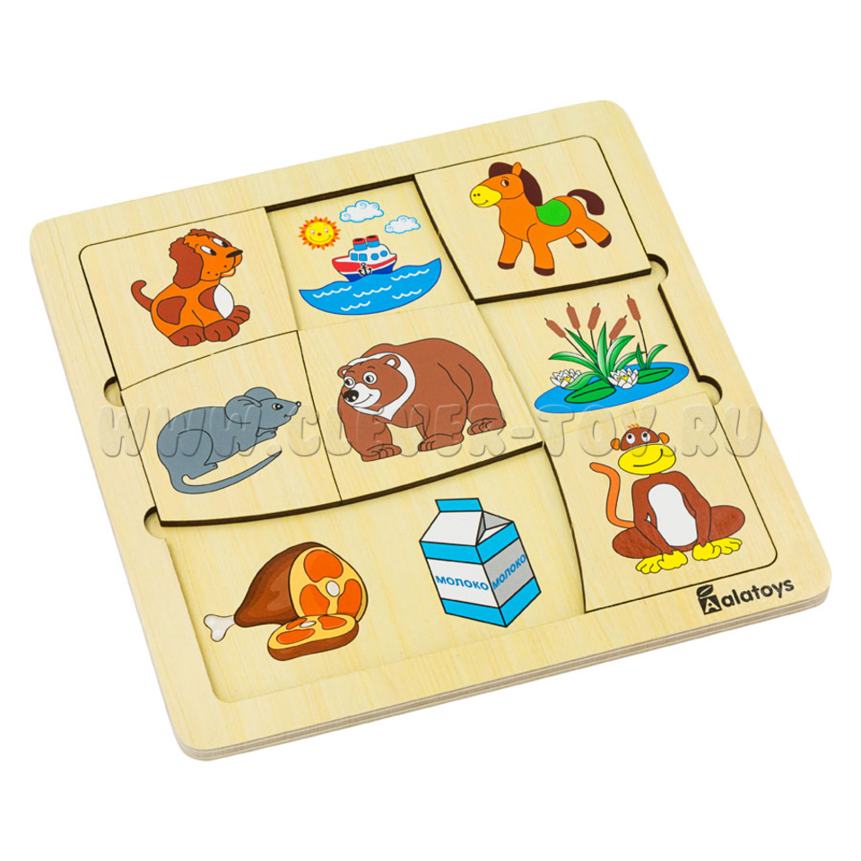 Пазл-ассоциации "Животные" (21*21 см, 9 карточек, основание)