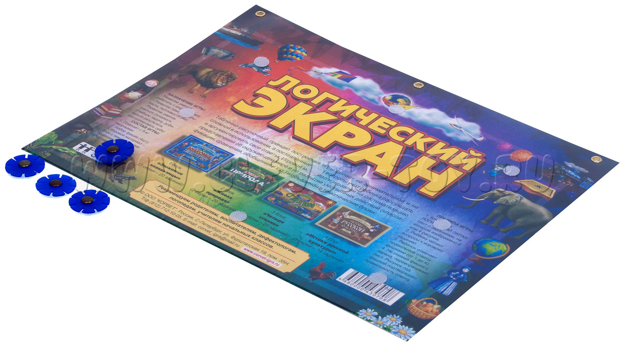 «Логический экран» обязательно применяется вместе с альбомами заданий. Игровой материал направлен на систематизацию представлений об окружающем мире и на развитие умственных действий (классификации, сравнения, обобщения) и объединён в тематические блоки: