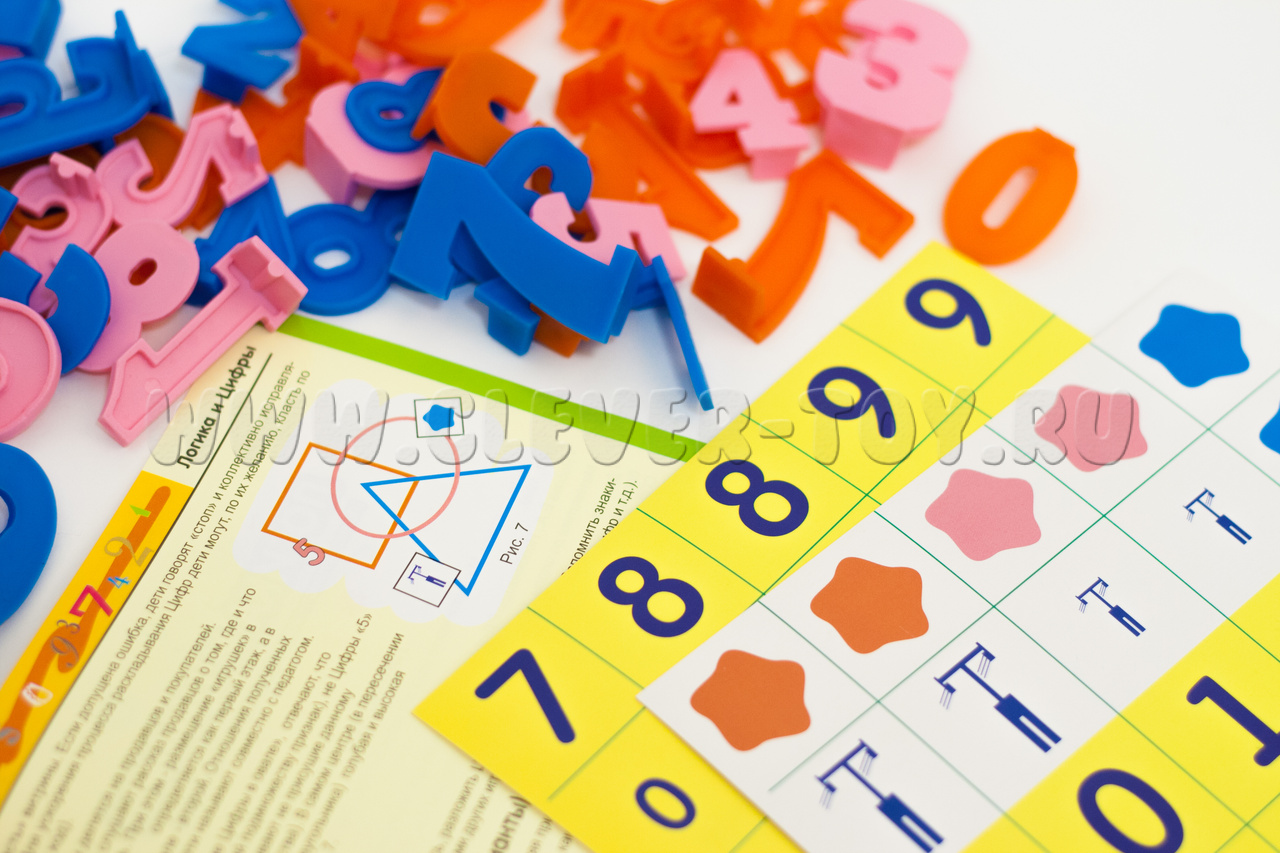 • большие цифры синего цвета – 4,5 см., 10 шт. (от 0 до 9);