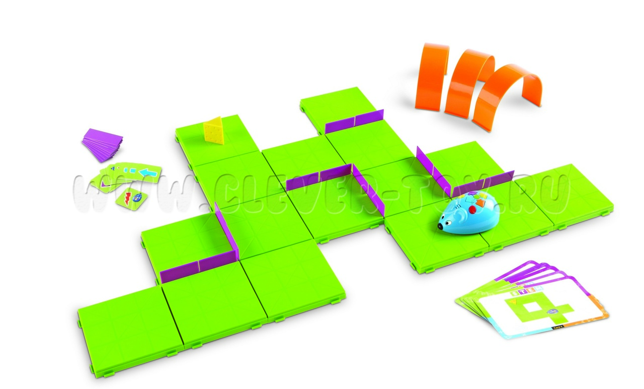 • Робомышь размером 10 см, на корпусе 7 кнопок для программирования, требует 3 батарейки ААА (не включены в комплект).