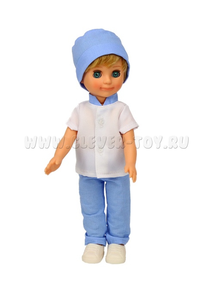 Кукла в костюме доктора поможет малышу в игровой форме узнать тонкости работы медицинского работника и почувствовать себя настоящим врачом.