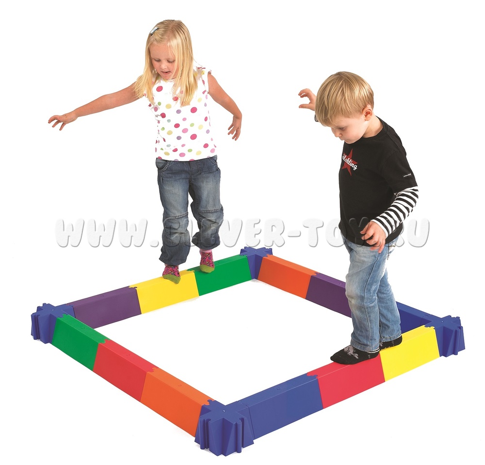 Дорожка состоит из 28 разноцветных деталей, которые можно соединять между собой в замкнутые пути: в форме кольца, в форме четырехугольника с помощью 4 угловых крестообразных элементов. А можно обе формы одновременно.