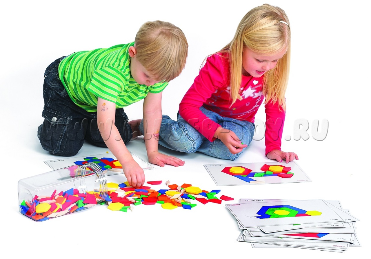 Можно приобрести набор мозаичных элементов Pattern Blocks дополнительно к игровому набору GeoLand.