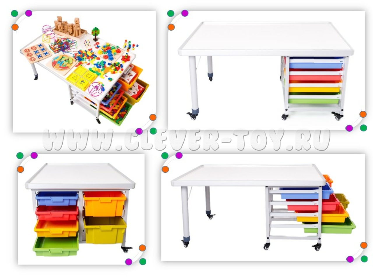 4. Удобная система хранения материалов - выдвижные ящики разного объема, которые легко могут использоваться детьми самостоятельно.